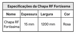 Chapa Resistente ao Fogo (RF) Fortíssima é a chapa Gypsum Drywall de 15mm com borda rebaixada e indicada para montagem de paredes e forros internos, em áreas secas que possuam necessidades específicas de melhor desempenho contra a ação do fogo, maior robustez para receber cargas, maior resistência ao impacto, melhor conforto térmico e acústico.