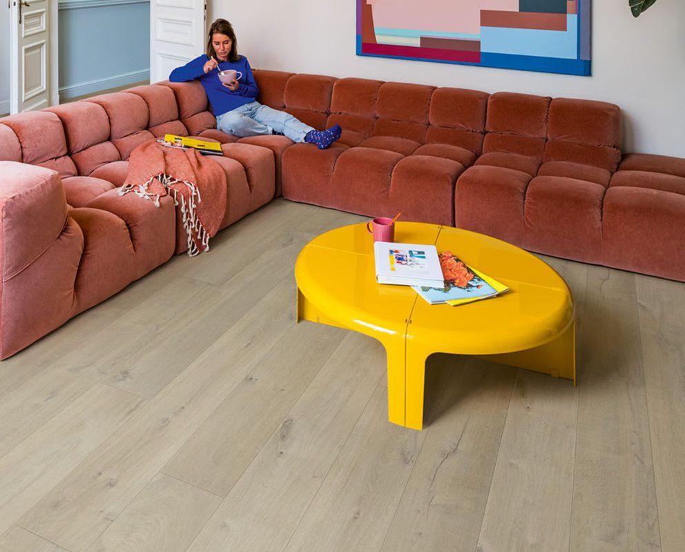 A Quick-Step Impressive é uma coleção de pavimentos laminados com aspecto e toque excepcionalmente naturais. Os veios da madeira autêntica das tábuas, por exemplo, estão também perfeitamente refletidos nas juntas do pavimento.