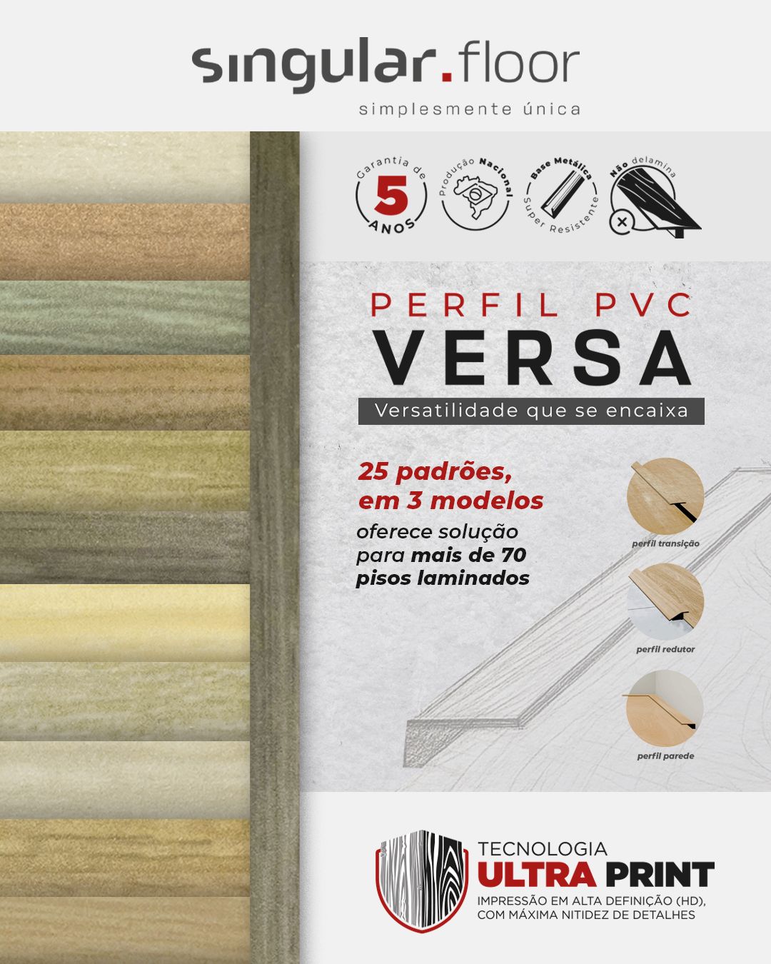 Apresentamos o Versa - Perfil de PVC da Singular Floor — Criada para valorizar a versatilidade do seu projeto!