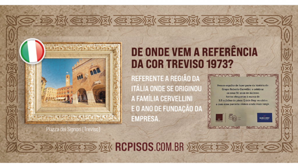 Celebrando os muitos anos de parceria entre RCERVELLINI e QUICK STEP, apresentamos essa exclusividade da LINHA PREMIERE, uma cor exclusiva e comemorativa aos 50 anos da RCERVELLINI.