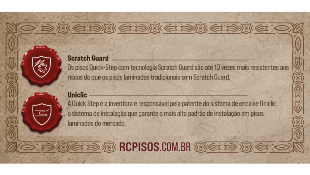 Os pisos Quick-Step tem tecnologia Scratch Guard, o que significa que são até 10 vezes mais resistentes aos riscos do que os pisos laminados tradicionais sem Scratch Guard.